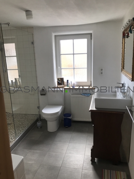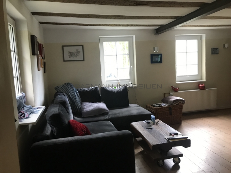 Das charmante Fachwerkhaus bietet circa 125 m² Wohnfläche, verteilt auf drei Etagen. Im Erdgeschoss befinden sich die große Küche mit angebautem Wintergarten, das großzügige Wohn- und Esszimmer, sowie ein Gäste-WC. Im Obergeschoss befinden sich das Schlafzimmer, ein Kinderzimmer und das geräumige Wannen- und Duschbad. Das Obergeschoss verfügt über zwei weitere Zimmer und ein kleines Duschbad.