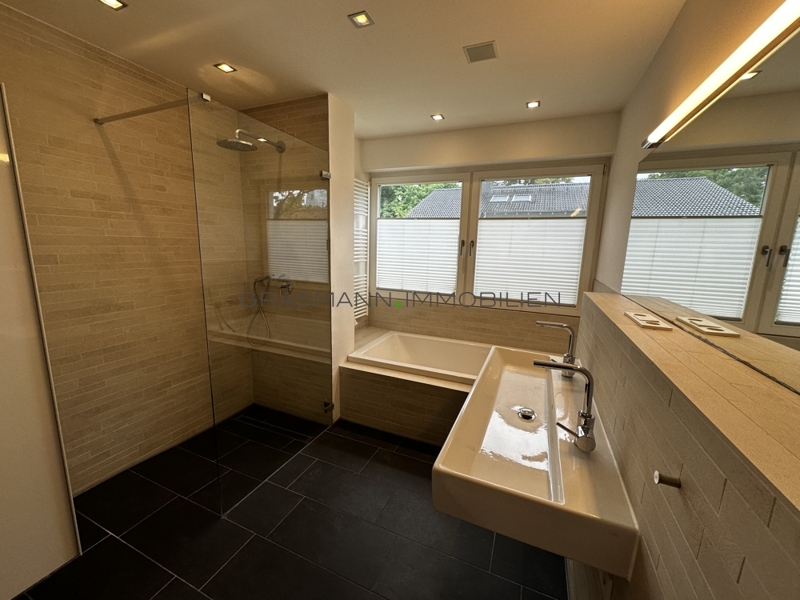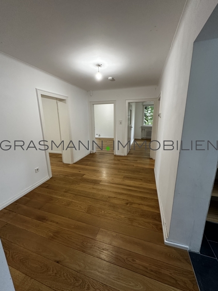 Die im 1. Obergeschossen gelegene, helle, großzügige 4 Zimmerwohnung verfügt über eine einladende Diele, von der aus es in das geräumiges ca 9 m² großes Tageslicht Wannenbad mit Walk-in Dusche geht, in die ca. 8 m² große Küche, inklusive Einbauküche, in das ca. 24 m² große Wohn-/Esszimmer mit Zugang zur Loggia, in das ca. 21 m² große Schlafzimmer und in die beiden ca. 15 bzw. 16 m² großen Kinderzimmer.